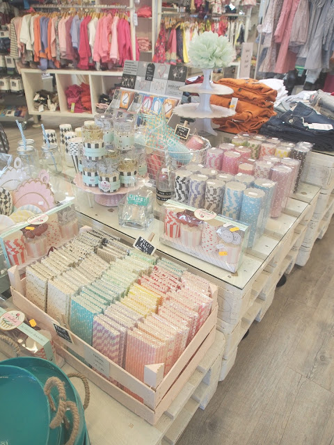 Täällä liikkeessä kyllä ihan hullaantui. Ei oikein tiennyt mitä katsoa, kun kaikkialla oli ihania sisustusjuttuja ja kauniita lastenvaatteita. Olin päättänyt etukäteen, että ostan lähinnä pojan syntymäpäiväjuhlia varten tarvikkeita. Onneksi olin rajannut ostoslistaa tai muuten olisi voinut tulla kallis lasku täältä lähtiessä. Kuka tällaisia ihania hyllyjä voisi vastustaa?